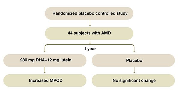 It was found that DHA plus lutein supplementation is effective in increasing the MPOD and may help in prevention of age related macular degeneration.